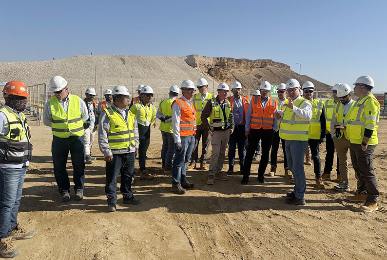 近日,沙特阿拉伯国家石油公司高级经理Tamour javed、尼奥姆公司高级项目经理GabrielaFelecan一行深入米兰平台沙特分公司承建的尼奥姆新城绿色甲醇项目检查。