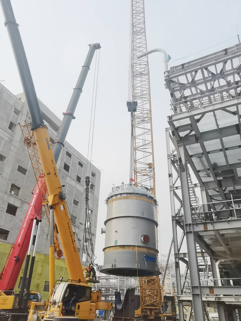 此次聚合反应釜的成功吊装,不仅为项目后续的大件吊装工作积累了宝贵经验,更彰显了公司在大型设备吊装领域的强大实力和精湛技艺。分公司、项目部将坚持科学管理、安全施工、高效推进项目建设,继续秉承严谨细致的工作作风,以饱满昂扬的工作热情,持续狠抓现场管控,深化精益管理,确保交付精品工程、满意工程。