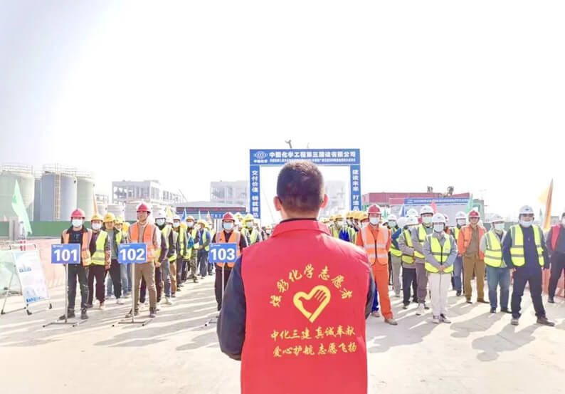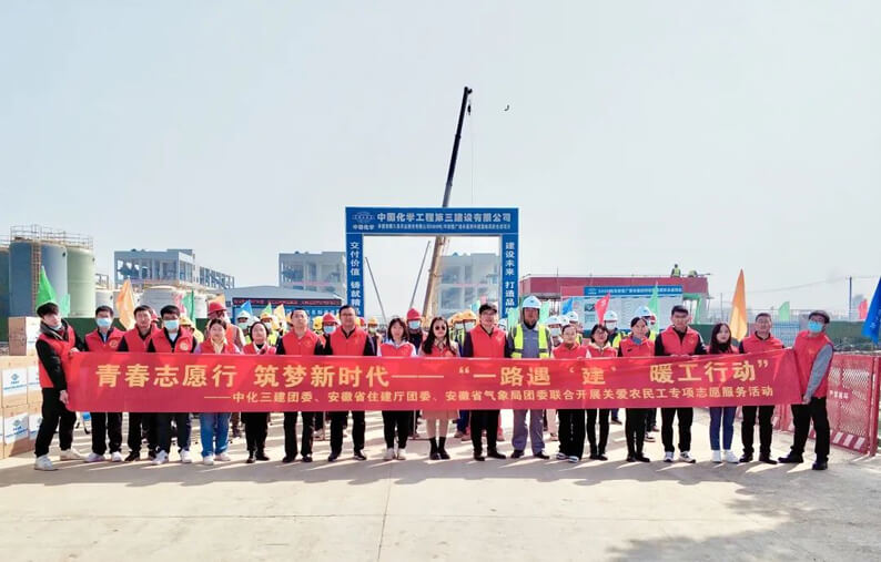 今年3月5日是第60个“学雷锋纪念日”和第24个“中国青年志愿者服务日”,为贯彻落实习近平总书记关于深入开展学雷锋活动的重要指示精神,大力弘扬雷锋精神和“奉献、友爱、互助、进步”的志愿精神,公司团委联合安徽省住建厅、安徽省气象局团委,在公司承建的安徽久易农业股份有限公司5000吨/年新型广谱杀菌剂丙硫菌唑原药合成项目现场开展“一路遇‘建’ 暖工行动”关爱农民工专项志愿服务活动。