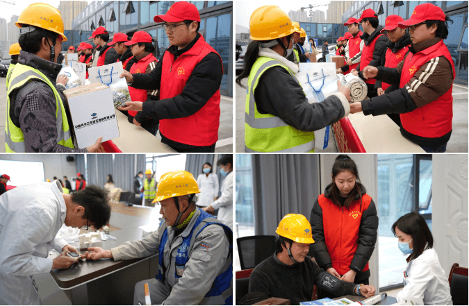 通过前期调研,公司团委为项目现场20名一线困难工友发放了承载着温情与关爱的“微心愿”礼物。安徽体院的青年志愿者们现场教学八段锦和穴位拍拍操,帮助农民工缓解疲劳、增强体质。安医大一附院(北区)医护人员为工友们测量血糖、血压,进行现场问诊,普及健康知识,帮助农民工更好地了解自身健康状况,提高健康意识。此外,大家还贴心地为农民工进行手机免费贴膜、清理内存空间,解决工友们日常使用手机的实际问题。